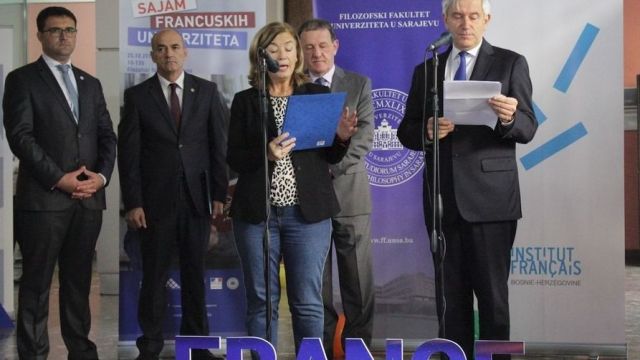 - Muhamed Dželilović, doyen de la faculté de philosophie et M. Rifat Škrijelj, recteur de l’université de Sarajevo ont également assisté à l’inauguration du salon. Dans leur discours ils ont souligné l’importance de la coopération entre les universités de toute la Bosnie-Herzégovine et établissements d’enseignement supérieur français, des mobilités effectuées par les étudiants et les professeurs, des bourses pour les jeunes étudiants en master et doctorat et surtout du partage de connaissances et d’expériences qui sont le fruit des relations académiques entre les établissements.