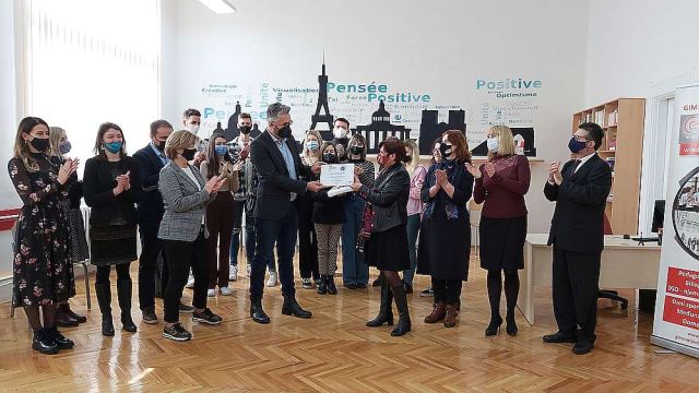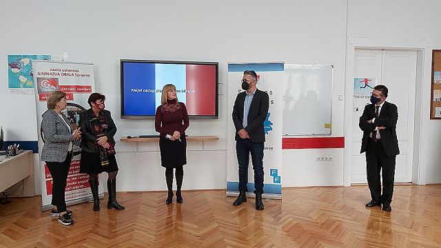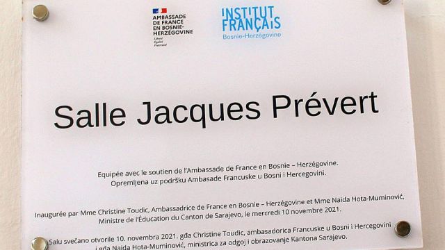 A cette occasion, l’Ambassadrice de France en Bosnie-Herzégovine et la Ministre de l’Education du Canton de Sarajevo ont inauguré la salle de cours Jacques Prévert équipée avec le soutien de l’Ambassade de France. Les élèves ont choisi de donner à leur salle de cours le nom du célèbre poète français Jacques Prévert.