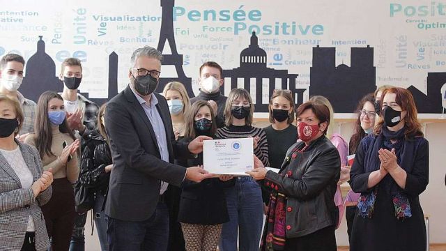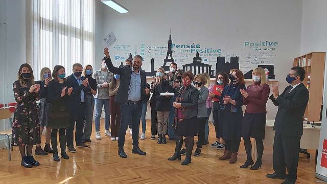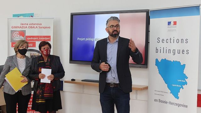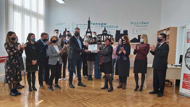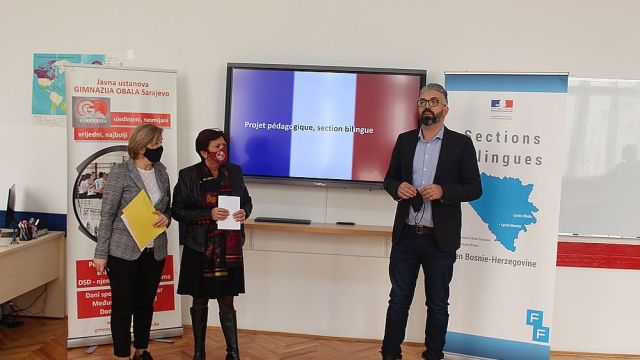 Le 10 novembre, Mme Christine Toudic, Ambassadrice de France en Bosnie-Herzégovine, Mme Lamija Husić, l’adjointe de la Ministre de l’éducation du Canton de Sarajevo, et M. Benjamin Hedzić, Proviseur du lycée Obala se sont réunis au lycée Obala pour célébrer le succès de la section bilingue francophone du lycée qui a obtenu le LabelFrancEducation, seulement 4 années après son ouverture.
