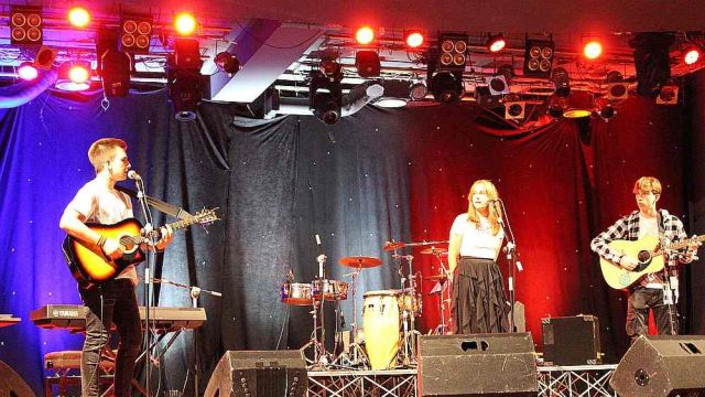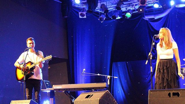Les élèves Alma, Tarik, Nur et Andrej du lycée Obala ont ouvert le concert avec quelques chansons en francais, avant l’arrivée de Couleur Terre.
