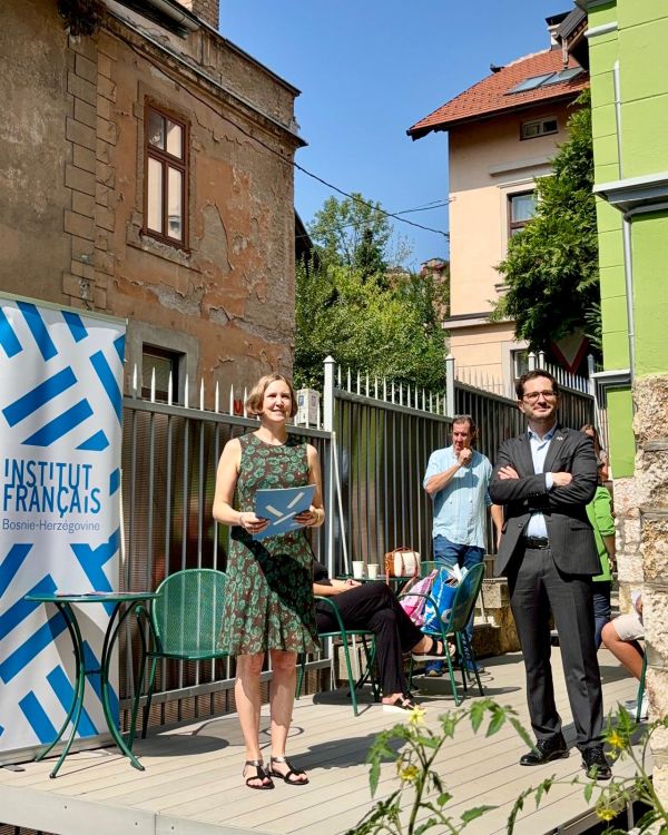 À cette occasion, Ambassadeur de France en Bosnie-Herzégovine, Son Excellence M. François Delmas ainsi que Loé Lagrange, directrice de l’Institut français de Bosnie-Herzégovine, ont pris la parole devant le public.