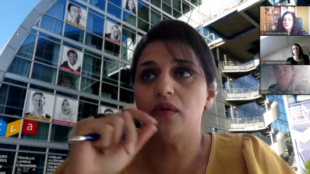 Mme Merima Bunda, professeure de chimie en section bilingue au lycée Obala de Sarajevo, a témoigné sur son expérience d’enseignement de la chimie à distance à partir de plusieurs applications numériques. Mme Jasmina Ivkovska, professeure d’histoire à Skopje, a présenté les projets pédagogiques qu’elle a mis en place pour motiver ses élèves lors des cours en ligne et M. Đura Pađan, professeur d’informatique à Belgrade, nous a fait découvrir ses techniques d’animation de cours en ligne.