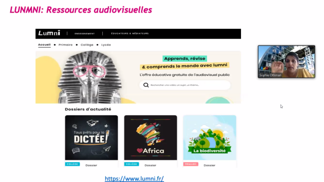 Mme Sophie Othman, Maître de conférences en didactique des langues étrangères et ingénieure numérique au CLA de Besançon – Université de Franche – Comté a présenté des ressources et outils pour animer des classes virtuelles dans un contexte d’enseignement bilingue.